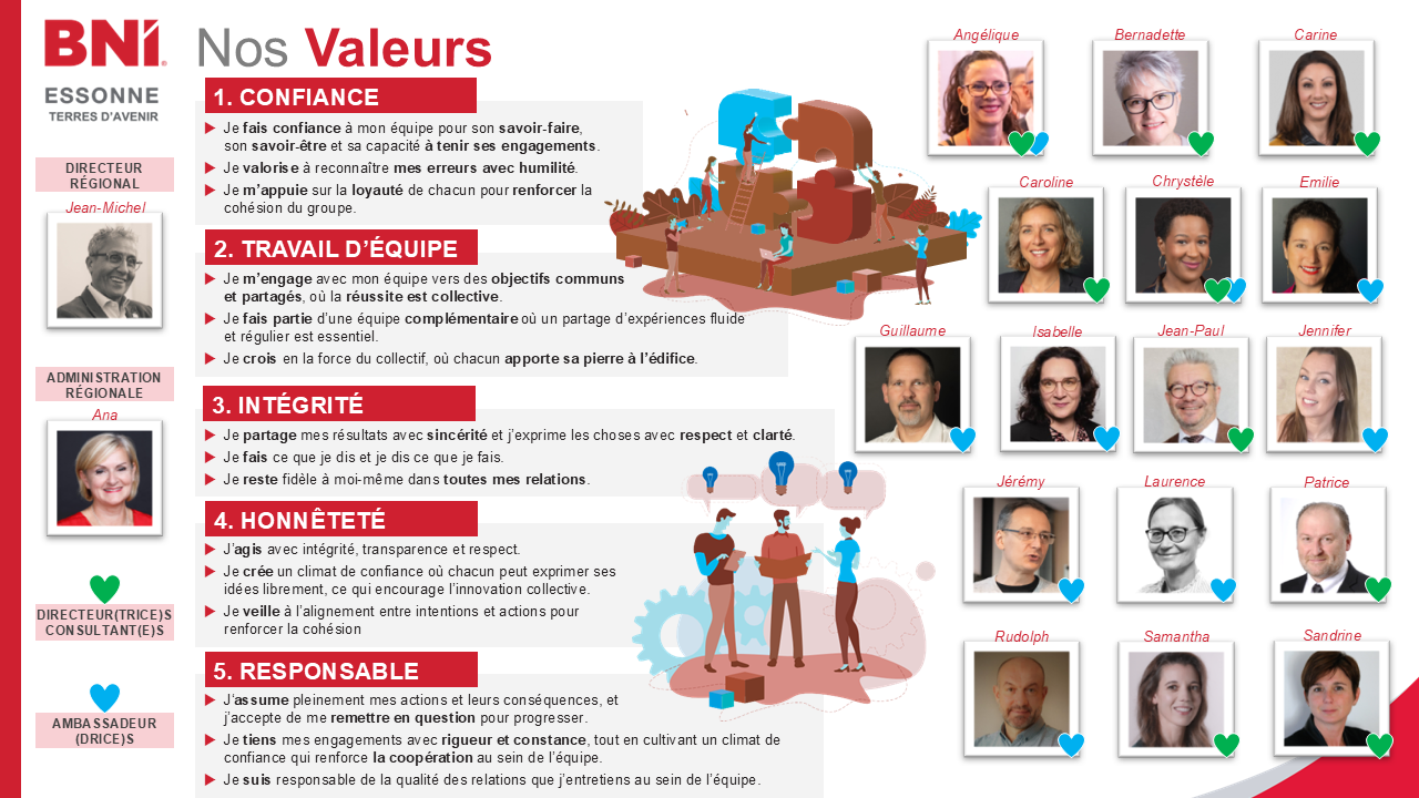 Les membres BNI partagent la philosophie « Qui Donne Reçoit » : l’altruisme, l’entraide et la confiance créent la cohésion du Groupe.
